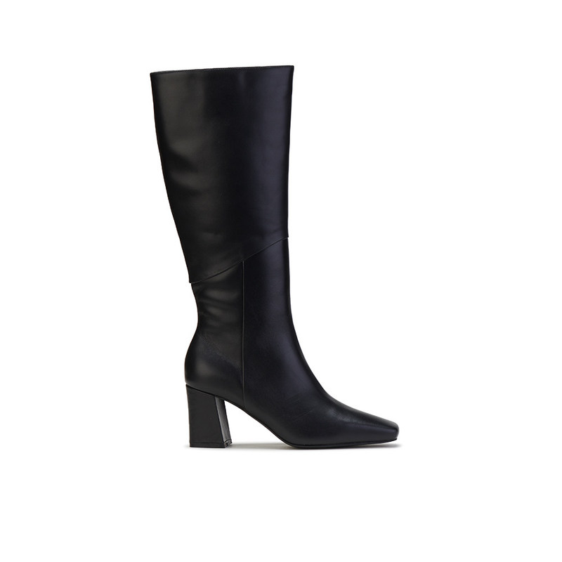 Черные кожаные сапоги с толстыми каблуками, современные и модные